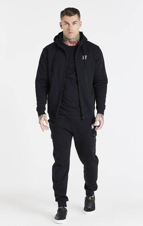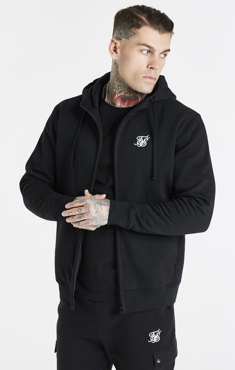 Mikina Siksilk - Zip Through Funnel Neck Hoodie Black | Pánske mikiny s kapucňou / so zipsom | TrajektShop.sk